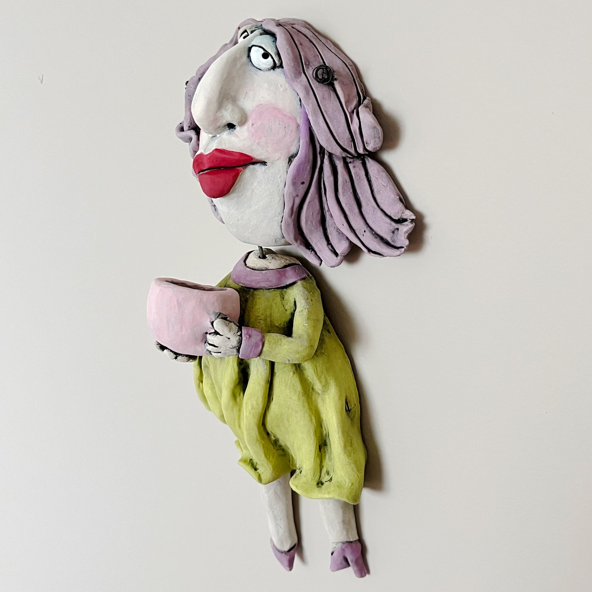 Original Sculpture wall hangings. 10" tall 4.5" wide 2.5" deep. Head is attached to the body with wire and also has a wire on the back of the head for hanging. 5 Pieces in this group.