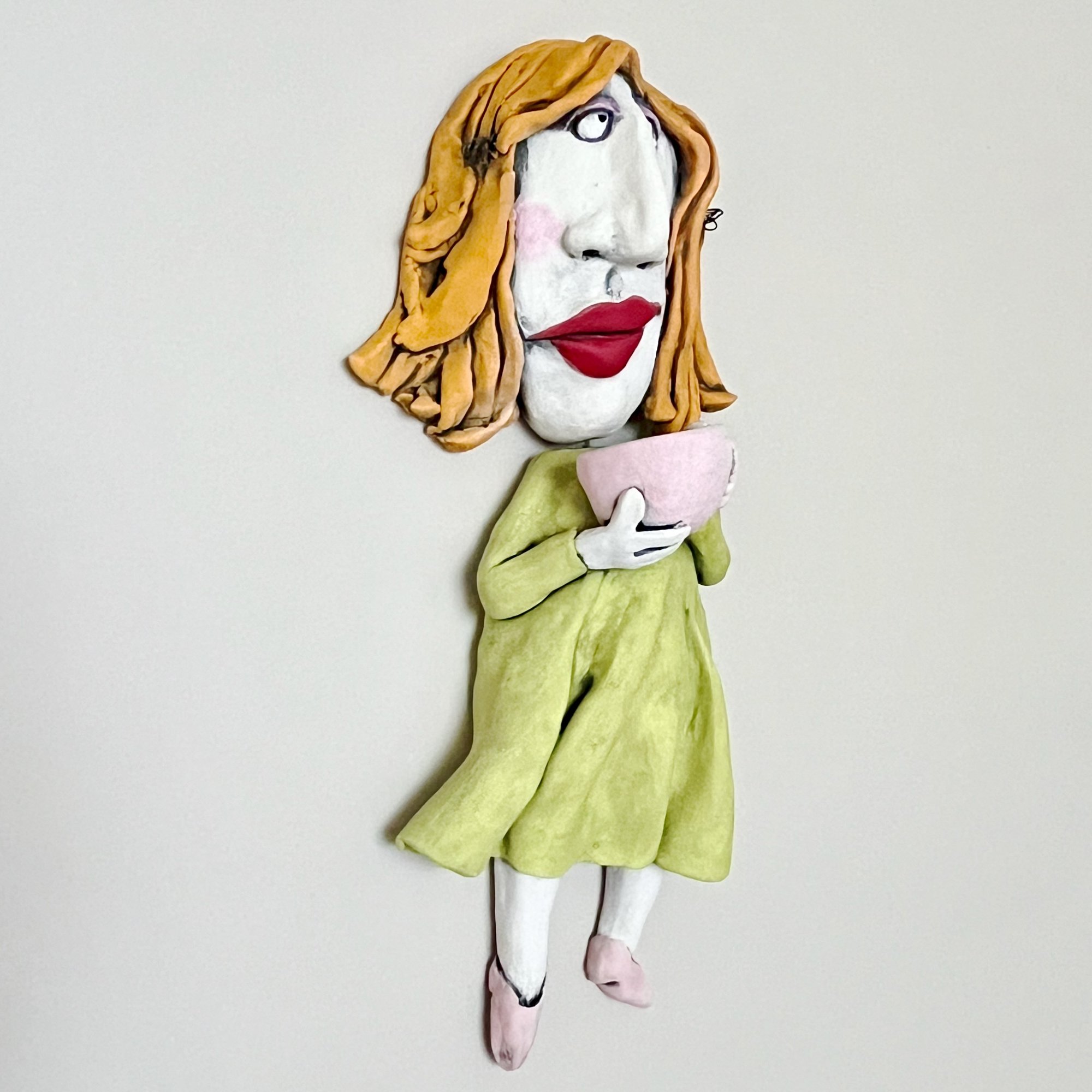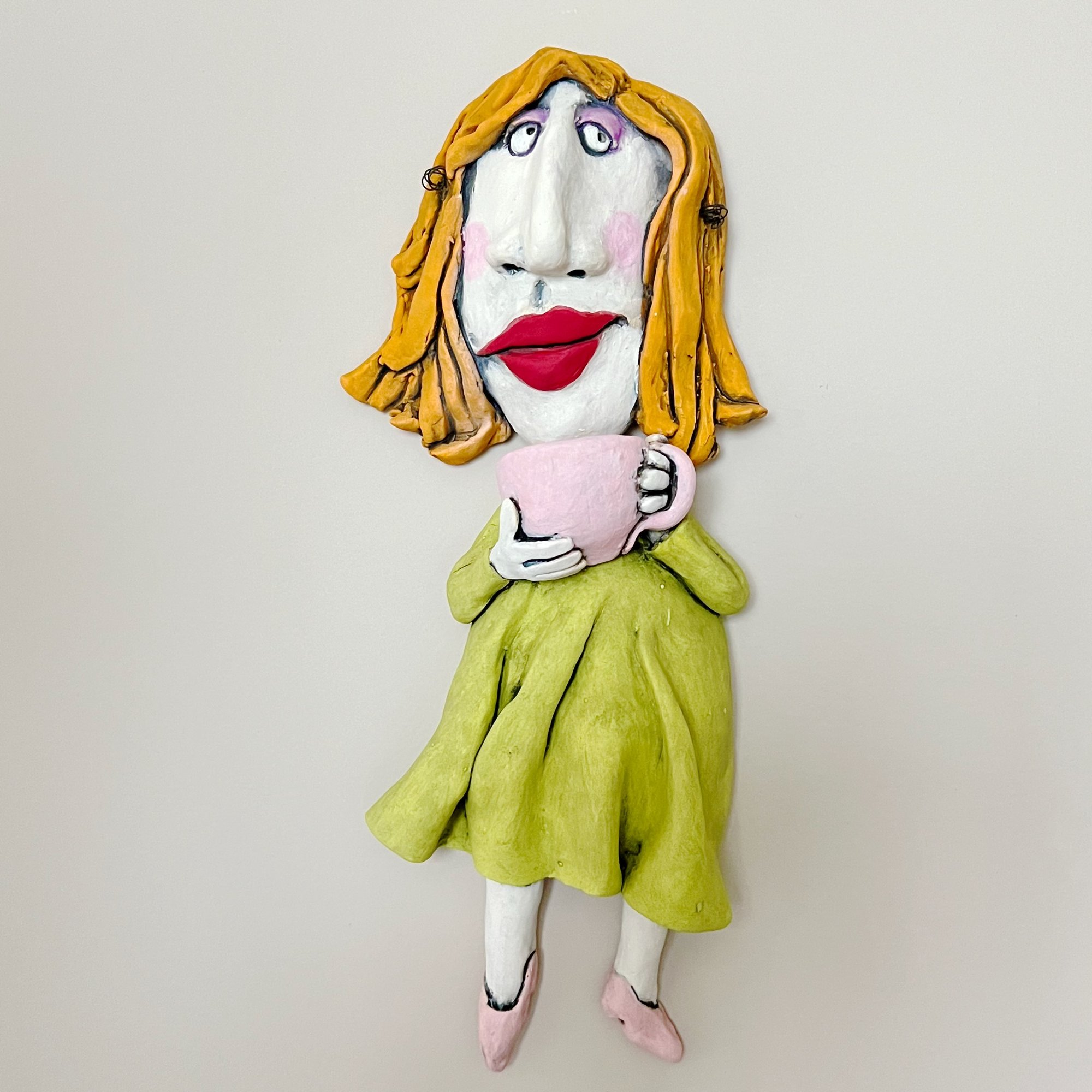 Original Sculpture wall hangings. 10" tall 4.5" wide 2" deep. Head is attached to the body with wire and also has a wire on the back of the head for hanging. 5 Pieces in this group.