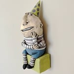 Original Sculpture wall hangings. One of a kind, individually sculpted stoneware, colored with Underglazes. Designed to easily and securely hang on the wall. 9.5" tall 4" wide 3" deep